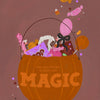 3 options of a candy-filled jack-o-lantern surrounded by stars and candy with the words "May your October be filled with Magic" over purple background.