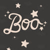 4 options of "Boo" text surrounded by stars over various color backgrounds